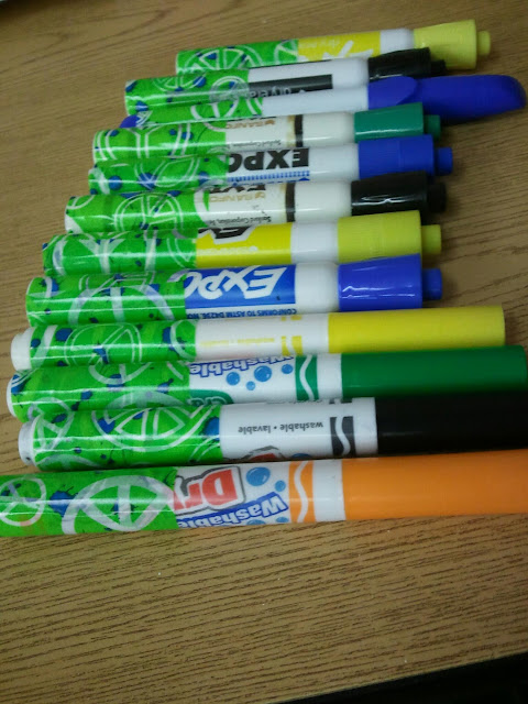 I told you I was in love with fun duct tape! Here's another use I found for this wonderful invention! Duct tape makes a Wonderful border! It comes in lots of different colors and designs and makes for a nice straight border. In the picture below you can see that I used it around my whiteboards in the back of the classroom where I plan to have circle time. As you can see on the top picture, it is on top of the old chalkboard and I didn't like that I could see the raw edges, so I decided to cover them up. This is where the duct tape comes in. It didn't take me very long to put up, and I was very happy with the results!